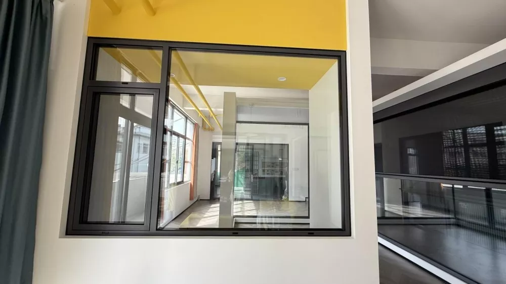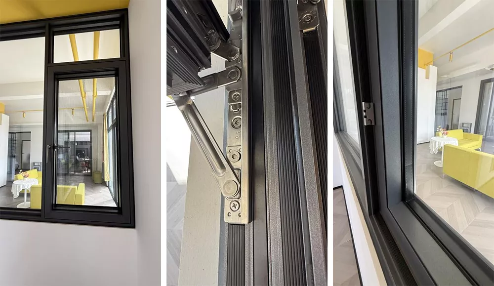 Тонкие алюминиевые створчатые окна с ультратонкой рамой и огромной неподвижной стеклянной панелью в сочетании с верхней ручкой и скрытым вентилятором обеспечивают максимальную вентиляцию и обзор при открытии, создавая просторное и хорошо вентилируемое жилое пространство.