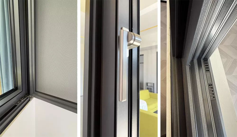 Окно с тонкой рамой и встроенным экраном, изготовленное из нейлоновых полос PA66 из первичного алюминия с толщиной стенок 3,0, может обеспечить стабильность и жесткость окна, а также обладает отличными теплоизоляционными и звукоизоляционными эффектами. Встроенный выдвижной экран с двумя колесами. Ежедневное использование, которое приносит удобство в жизнь, очень прозрачно, а сетка без пыли гарантирует, что ваши точки обзора останутся идеальными и четкими. Уникальная конструкция углового уплотнения навсегда исключает утечку воды на стыке ключевой вторичной рамы.